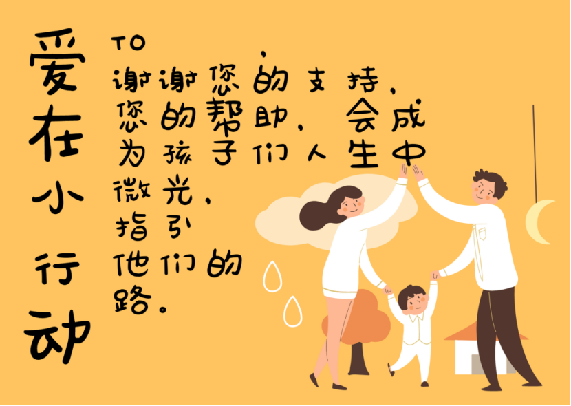 朋友们可以保存这个感谢卡的图片,手写自己的名字上去,创作一张独特的感谢卡,鼓励一下自己的爱心行动吧!