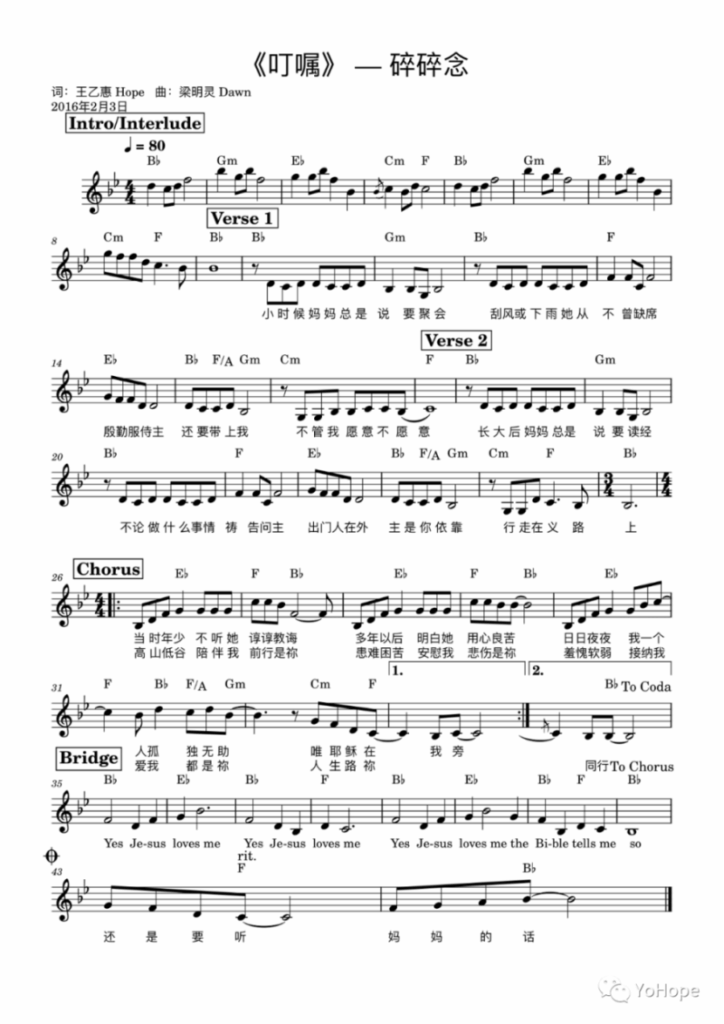 应一些朋友的要求给大家分享《叮嘱》的歌谱,顺便也写一点背后的故事吧。